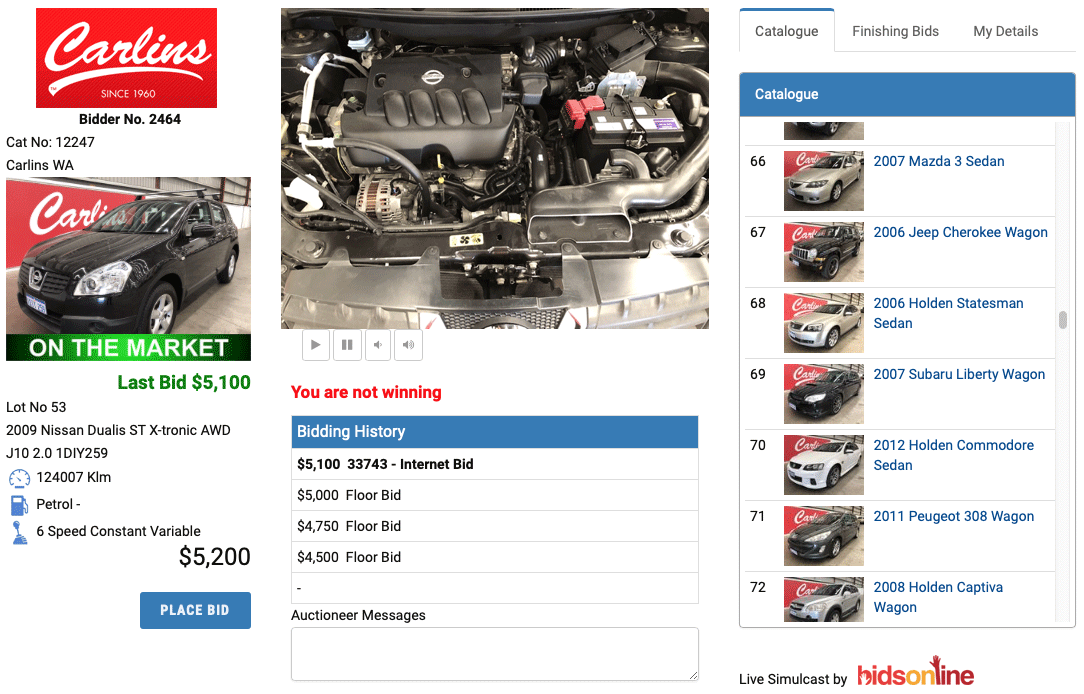 Bidsonline and Auto Auctions have together run a trial of a second video during their simulcast auction. The screen shot is from the iPhone web page showing the quality from the 2nd video. The 2nd video was broadcast using an iphone.